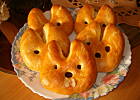 upieklam zajaczki na swieta, bardzo dodaly uroku mojemu stroikowi swiatecznemu, a jakie smaczne! Moj synek chetnie palaszowal te "buleczko-zajaczki"popijajac mleczkiem. Bardzo dziekuje ci angelo za pomysl na zajaczki, za rok tez beda. Pozdrawiam.