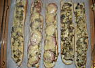 Bagietkę przekroić wzdłuż, podzielić na pół. Pieczarki oczyścić, pokroić w plastry. Cebulę obrać, posiekać. Masło rozgrzać na patelni, włożyć cebulę, zeszklić. Dodać pieczarki, podsmażyć na brązowo. Wsypać bułkę tartą, wymieszać, przyprawić tymiankiem, solą i pieprzem. Kawałki bagietki obłożyć farszem, posypać serem. Zapiekać 8-10 minut w temp. 200°C. Przed podaniem ozdobić natką.