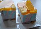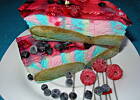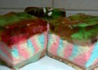 Zrobiłam to piękne ciacho po prostu pychotka, do wiśniowej galaretki dodałam niebieskiego barwnika i wyszedł mi jasny niebieski. To jest piekne, smaczne tęczowe ciacho, dzieki za przepis.
