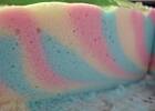 Dla ddatkowego efektu stosuje niebieski barwnik spożywczy , a jesli chodzi o wierzch to robie równiez z galaretki tecze , tzn najpierw polewam czerwnona czekam jak zastygnie i inne kolory pózniej nakładam :)