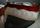 Ciasto robione po raz... nei wiem który raz, ale często je robię :)) Za dużo pianki się zrobiło więc w 2 foremkach zrobione. W sezonie zimowym zamiast truskawek idą delicje :)) Galaretkii truskawkowa i agrestowa z dodatkiem barwnikw . spozywczych! Zdjecia przed polanie galaretka.