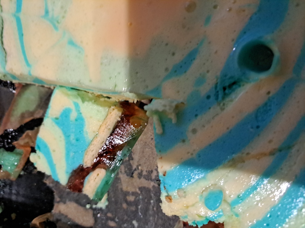Basiu, mi się wydaje że po prostu twoja masa była zbyt płynna, za mało stężała. Dlatego przy zbyt płynnej masie biszkopty popłynęły, a masy się zmieszały.