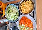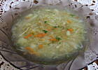 Marchew, piertruszkę i seler zetrzeć na tarce o grubych oczkach, pora pokroić w krążki. Do garnka włożyć masło i wrzucić wyżej wymienione warzywa, zalać 2 szklankami wody i przykryć. Dusić na wolnym ogniu jakieś 10 min. Następnie dodać pokrojoną młodą kapustę i uzupełnić wodą (odrobinę więcej, niż ma być zupy) gotować, aż kapustka zmięknie. Dodać kostkę rosołową, sól, jarzynkę. Ziemniaki pokroić w kostkę średniej wielkości i wrzucić na 10-15 min. przed końcem gotowania. Dosypać koperek i resztę przypraw.