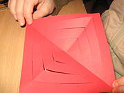 7. Znów odwracamy do dołu i sklejamy kolejne nacięcia