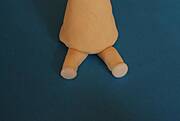 8- uformować dwa wałeczki jako ręce i przykleić do tułowia, na końcach spłaszczyć dłonie