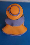 14- wyciąć dwa kółka, cienkie o średnicy 5 cm i grube o średnicy 2,5 cm, skleić kapelusik