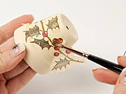 Aby utrwalić dzwoneczek, możesz pomalować go warstwą lakieru. Nie musi to być wykończeniowy lakier do decoupagu, można użyć zwykłego bezbarwnego lakieru do drewna, matowego lub błyszczącego.