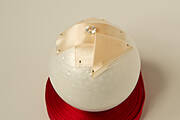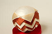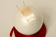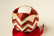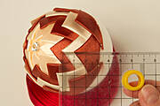 Najlepszy efekt wizualny daje zachowywanie siedmiomilimetrowych odstępów pomiędzy kolejnymi zakładkami. Odległości nie powinny być większe niż 1 cm, aby nie zaczęły być widoczne główki szpilek, którymi przymocowujemy do bombki materiał.