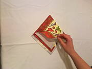 2. Odwracamy zagięciem do blatu i rogi z prawej strony zaginamy do środka:
