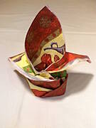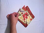 4. Odwracamy czubkiem do góry tak aby zagięcia były widoczne. Brzegi zaginamy nakładając jeden na drugi: