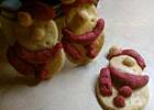 Wszystko przyklejać na białko.Połowę ciastek zostawić "bez ubranka". Wykałaczką zrobić oczy i buzie.