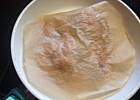Filet wkładamy na godzinę lub dłużej do marynaty zrobionej z oleju i pieprzu. Następnie odpowiedni kawałek papieru składamy na pół i umieszczamy na patelni. Na jedną połowę papieru do pieczenia układamy mięso przykrywam drugą połówką i dociskamy palcami. Smażymy z każdej strony 3-4 minuty. Przykrywamy pokrywą, wyłączamy gaz i pozostawiamy na około 10 minut. Solimy na samym końcu.