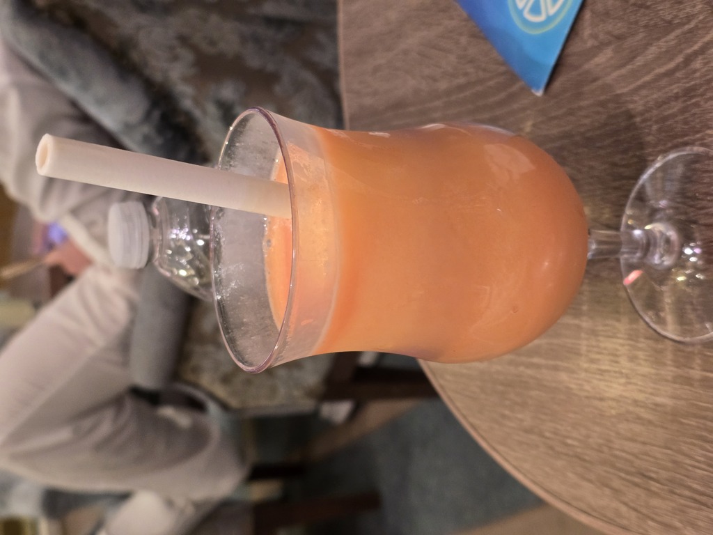 Na rejsie nie ma słomek. Tylko jadalne, do mrożonych napojów. Jakie to niedobre. Po pierwsze słodkie, po drugie lepkie w trakcie użycia, po trzecie dwa smakowe rodzaje - czekolada i truskawka.