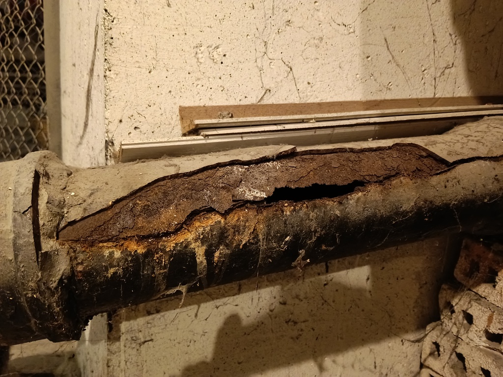 Póki co fachowcy od pękniętej rury nie odzywają się. Chyba uznali, że to nie wymaga natychmiastowej reakcji. Wkleję Wam zdjęcie. Tylko się nie przestraszcie - to jest w piwnicy a nie u mnie w domu ![]()