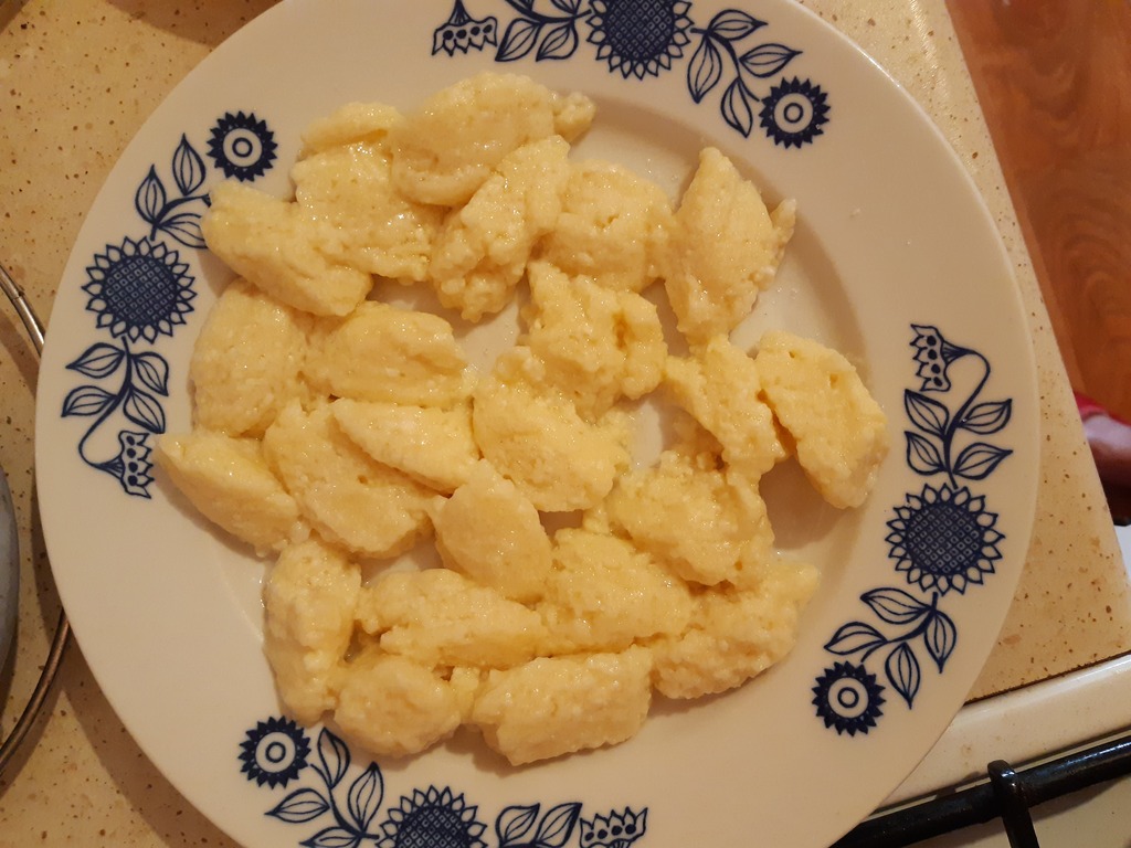 Z podanych składników wyrobić ciasto jak na kluski kładzione